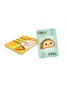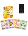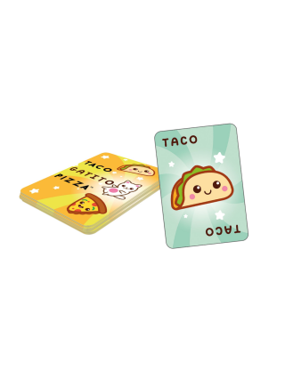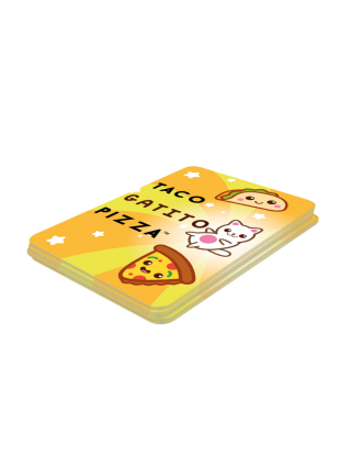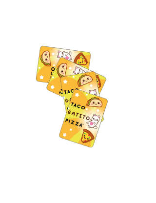 Cada jugador coloca una carta boca arriba en el centro mientras repite la secuencia: “Taco”, “Gatito”, “Pizza”... ¡Si la carta coincide con la palabra dicha, hay que dar una palmada rápida sobre el montón! El más lento se lleva las cartas. ¡Gana quien se quede sin cartas primero!