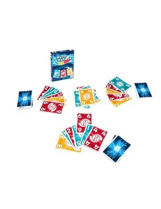 Alto Voltaje es un juego de mesa familiar de Mercurio que combina rapidez mental, operaciones sencillas y competencia entre jugadores. Con 73 cartas y una mecánica ágil, los jugadores deberán responder con destreza para descartarse primero.