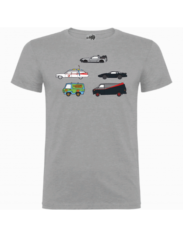 Revive la magia de los años 80 con esta camiseta retro de edición especial que reúne a los coches más icónicos de tu infancia. En el diseño encontrarás al inolvidable KITT de El Coche Fantástico, la mítica furgoneta del Equipo A, la siempre divertida Mystery Machine de Scooby Doo, el legendario Ecto-1 de los Cazafantasmas y, por supuesto, el DeLorean de Regreso al Futuro.