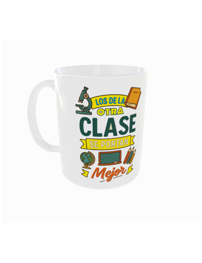 La taza “Los de la otra clase se portan mejor” está pensada para convertirse en el regalo perfecto para cualquier profesor o profesora. Su diseño divertido y lleno de color transmite cercanía, humor y agradecimiento, convirtiéndola en un detalle especial que los docentes recordarán con cariño.
